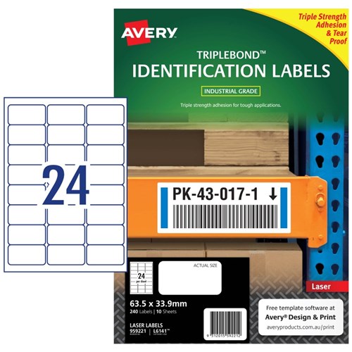 Avery 959221 Triple Bond Industrial Labels White L6141