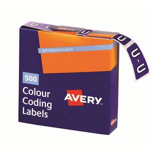 Avery Alphabet Coding Label U Side Tab 25x38mm Purple Pack of 500