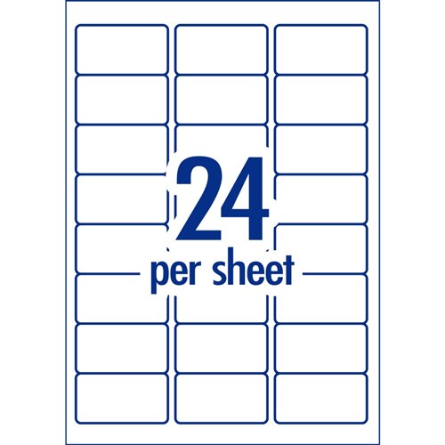 • Size: 64 x 33.8mm, 1200 labels, 50 sheets, 24 labels per sheet (24UP).