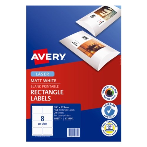 Avery Printable Labels L7165CL 99.1 x 67.7mm Rectangle Photo Matte White 8UP 160 Labels