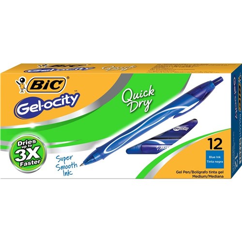 BIC GELOCITY GEL PEN Retractable 0.7mm Medium Blue Pack of 12