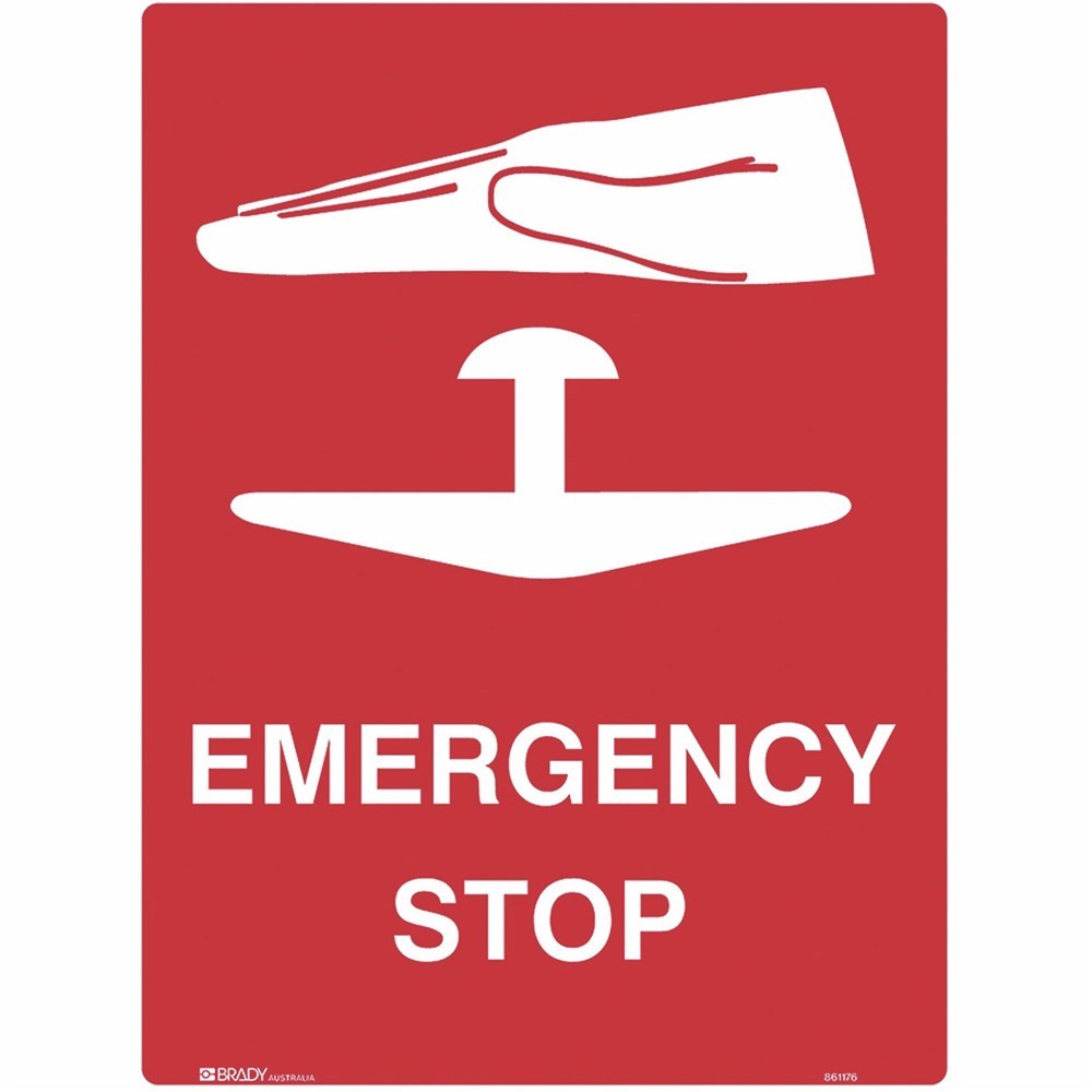 BRADY EMERGENCY SIGN Emergency Stop 600x450mm Metal