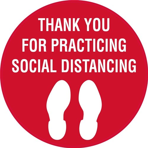 Brady Floor Marker THANK YOU FOR PRACTICING SOCIAL DISTANCING Red/White 440mm Dia