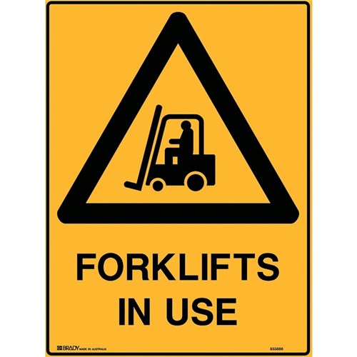 BRADY WARNING SIGN Forklifts In Use 600x450mm Polypropylene