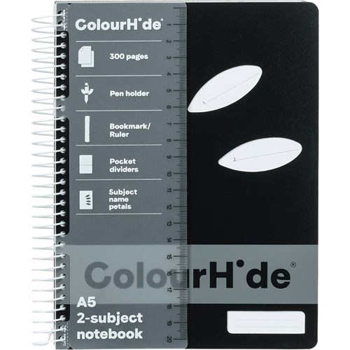 COLOURHIDE NOTEBOOK A4 2 Subject 300 Page Black