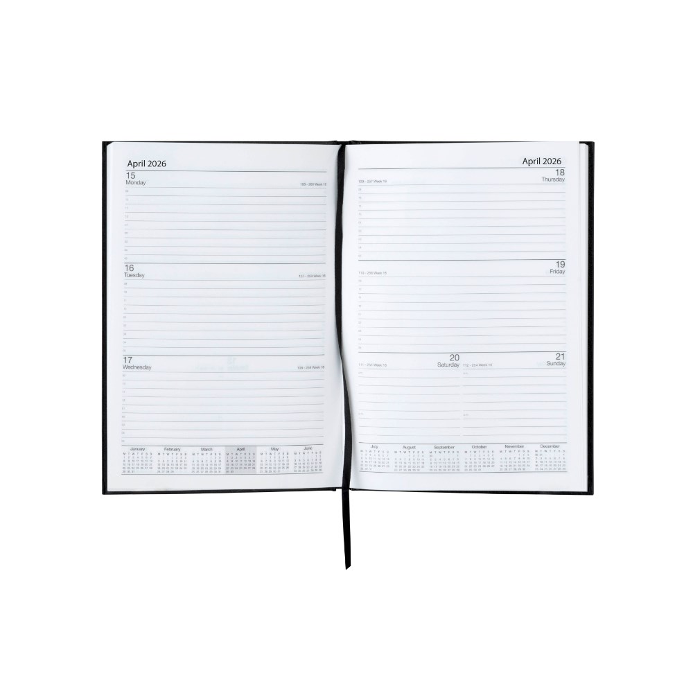 • Includes a ribbon bookmarker to mark significant dates, events, or entries within the diary.