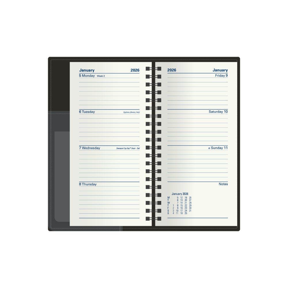 • Soft-touch padded cover. Lay flat wiro binding with ribbon marker.