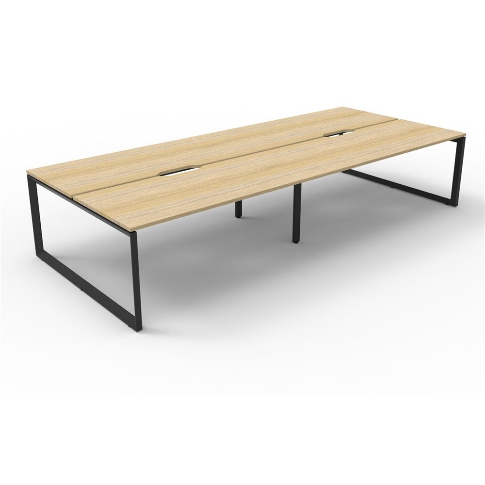 Deluxe Loop Workstation 4 Person No Screen 1500Wx750D Oak Top Black Double Frame