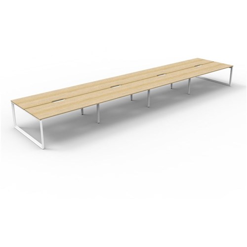 Deluxe Loop Workstation 8 Person No Screen 1200Wx750D Oak Top White Double Frame