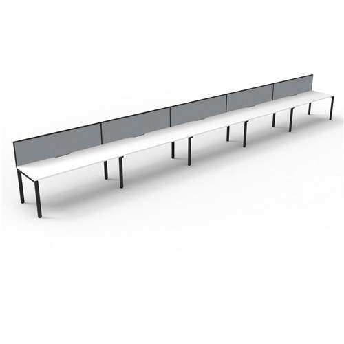 Deluxe Profile Workstation 5 Person With Screen 1500Wx750D White Top Black Single Frame