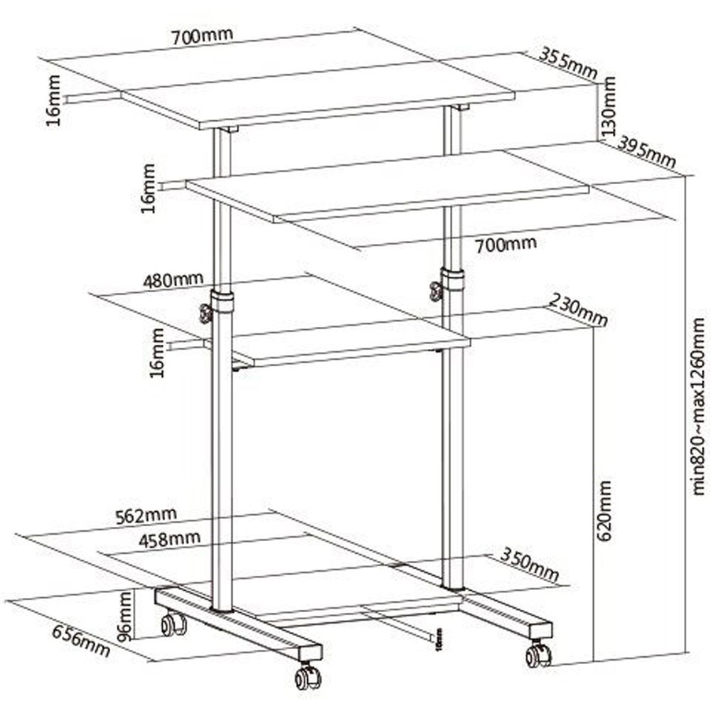 MOBILE COMPUTER CART With Lockable Castors Height Adjustable