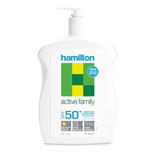Hamilton Active Family Sunscreen Lotion SPF50+ 1 Litre Pump Bottle Box Of 6