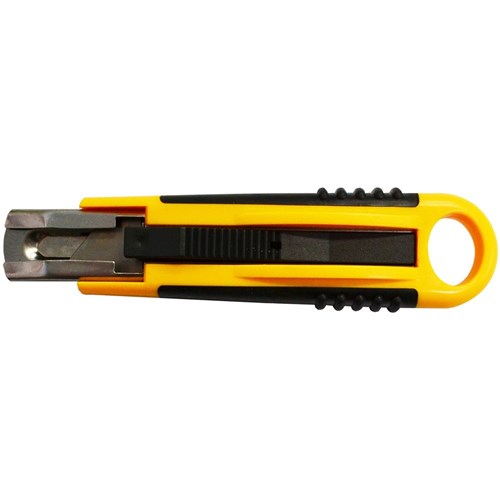 • Spring loaded blade automatically retract once pressure is released on the slide button