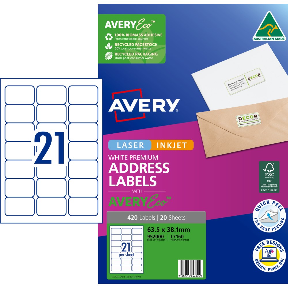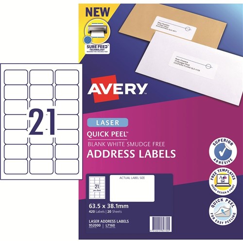 • Size: 63.5x38.1mm 420 labels, 20 sheets. 21 labels per sheet (21UP).