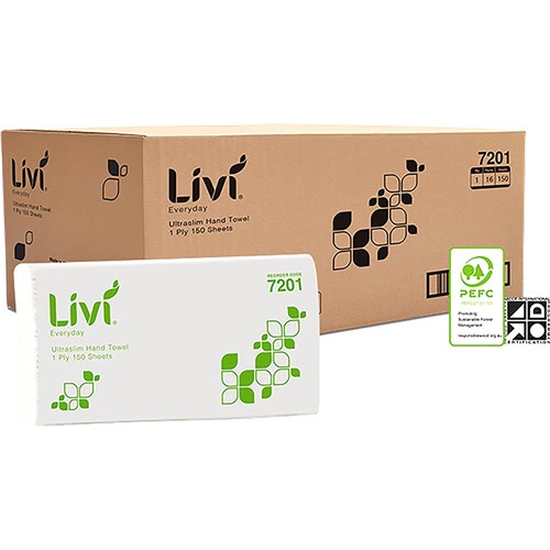 Livi Basics Hand Towel Ultraslim 1 Ply 150 Sheets Box of 16