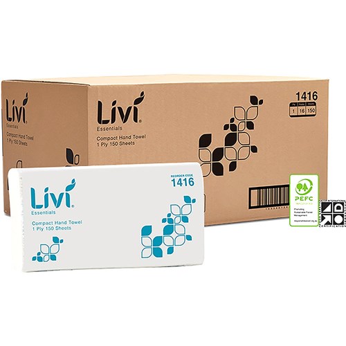 Livi Essentials Hand Towel Compact 1 Ply 150 Sheet Box of 16 suits dispenser 5507