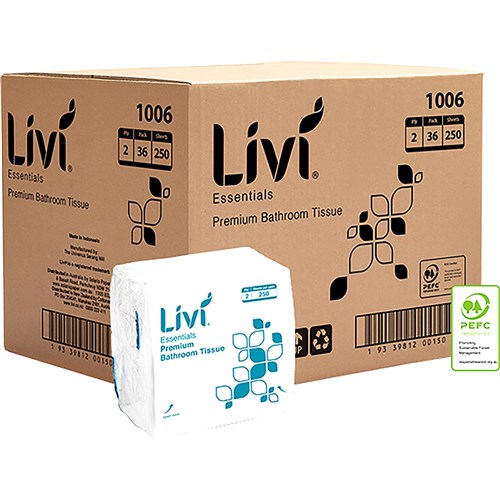 Livi Essentials Toilet Paper Interleaved 2 ply 250 Sheets Box of 36