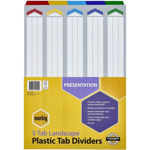 MARBIG COLOURED DIVIDERS A3 1-5Tab Board L/Scape Asst