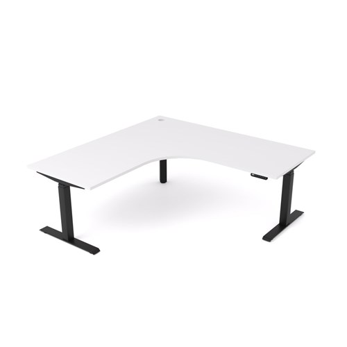 • Height adjustable 90 degree workstation right hand return Black frame White top.