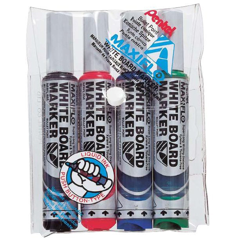PENTEL MAXIFLO WHITEBOARD Marker PUMP IT MWL5 Bullet Point Wallet of 4