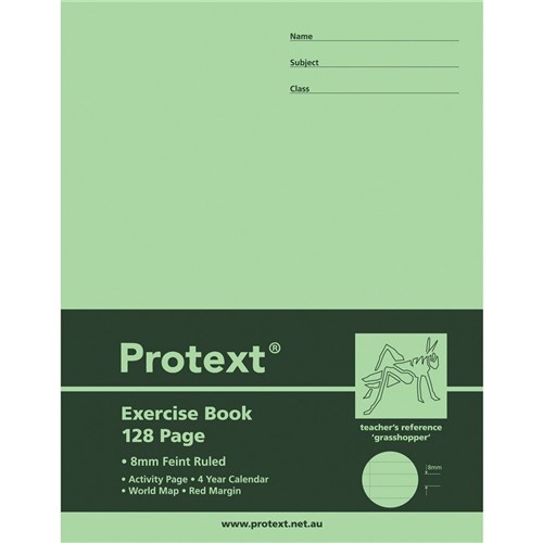 PROTEXT EXRCISE BOOK 225X175MM 8mm Ruled 128pgs, Grasshopper