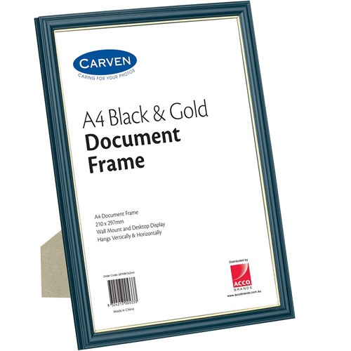 Q-FRAME CERTIFICATE FRAME BLACK WITH GOLD A4 Black With Gold Trim D