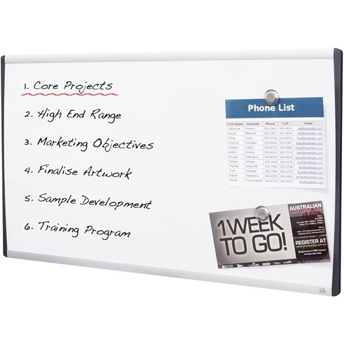 • The versatile whiteboard surface doubles as a magnetic board and features a lightweight aluminium frame.