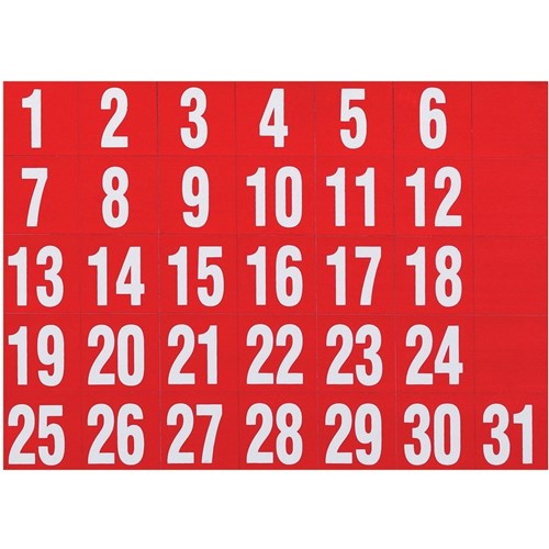 QUARTET MAGNETIC CALENDAR HEADINGS Dates White on Red 25x25 mm
