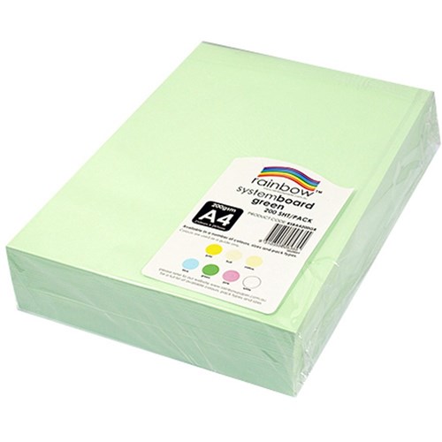RAINBOW SYSTEM BOARD 200GSM A4 Green Pack of 200