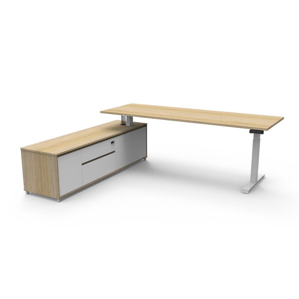 Rapidline Boost+ Executive Desk + LHS Cabinet 2270W x 1936D x 620-1270mmH Oak/White