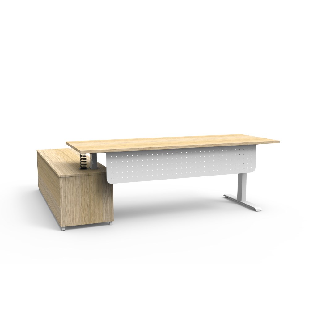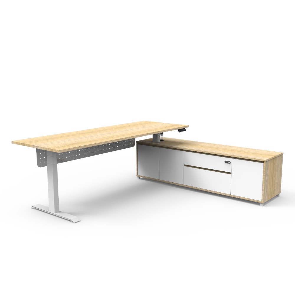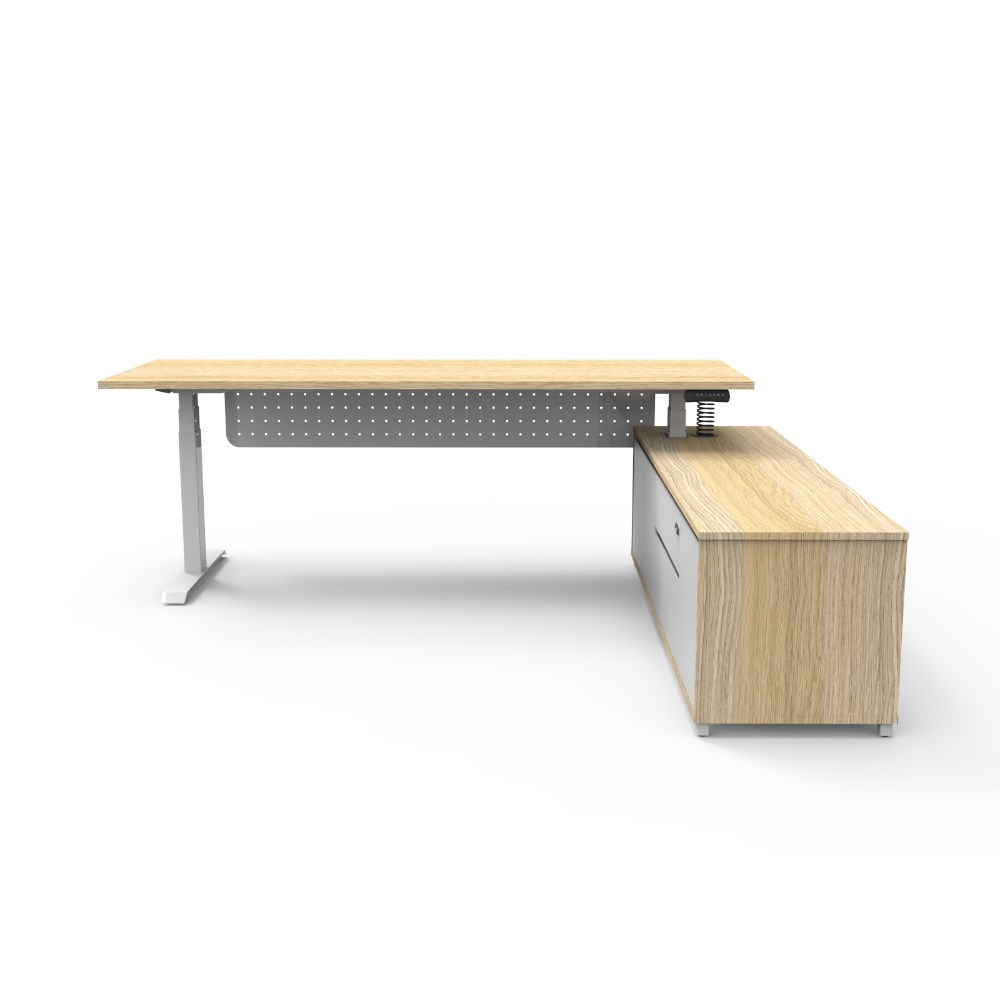 Rapidline Boost+ Executive Desk + RHS Cabinet+Panel 2270W x 1936D x 620-1270mmH Oak/Wht