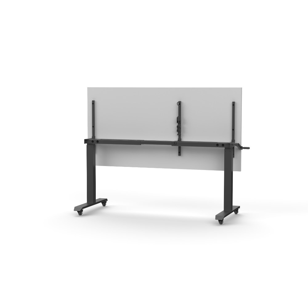 • Rapidline Boost manual crank height adjustable flip top table. Natural white top black frame.