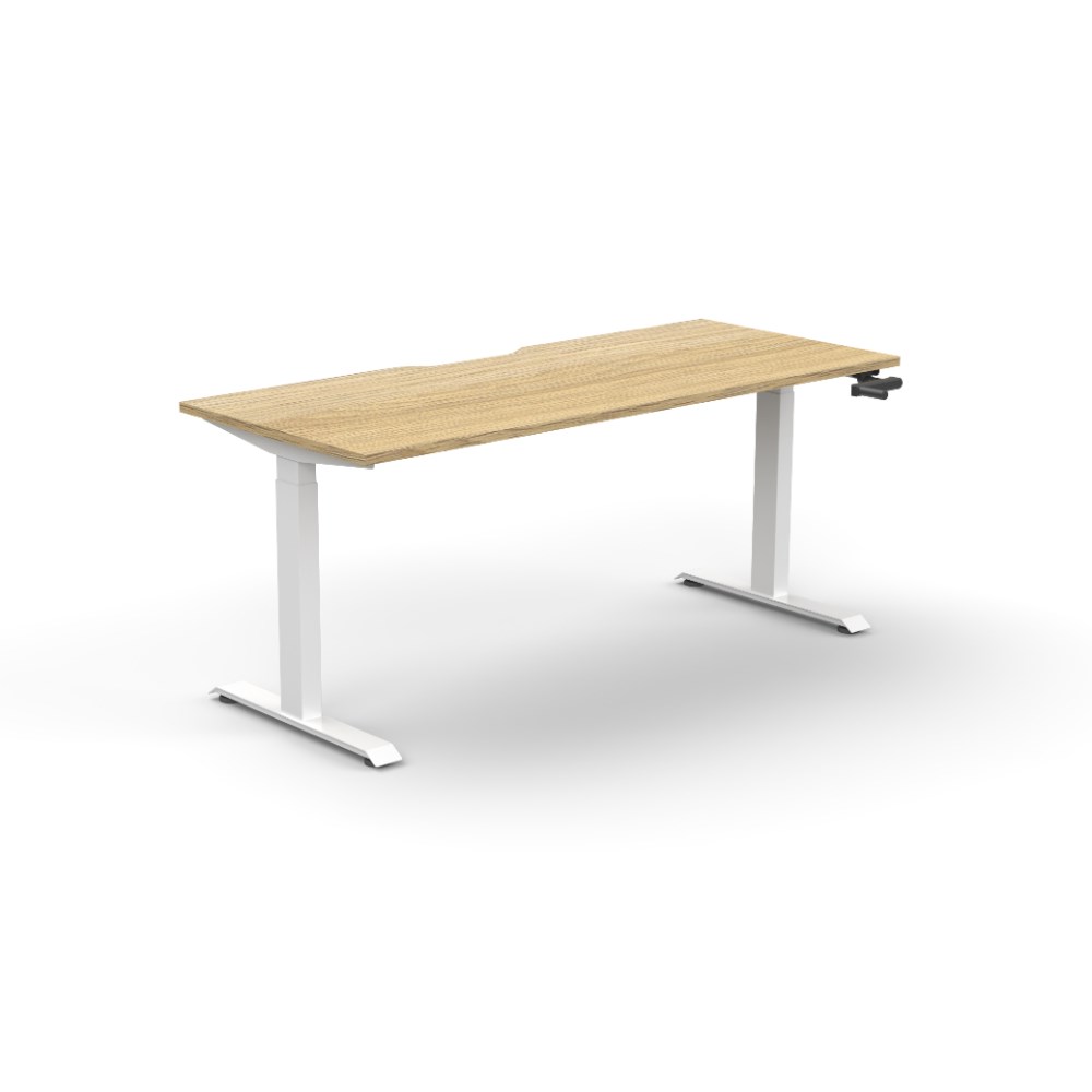 • Rapidline Boost single sided manual crank height adjustable workstation. Natural oak top with white frame.