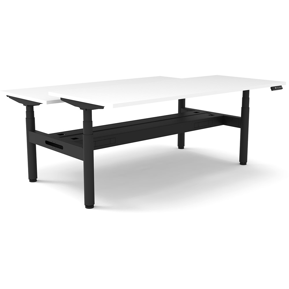 • 70mm diameter round column legs. 700mm wide foot size with adjustable leveling feet, return foot: 700mm. Comes with cable tray for cable management.