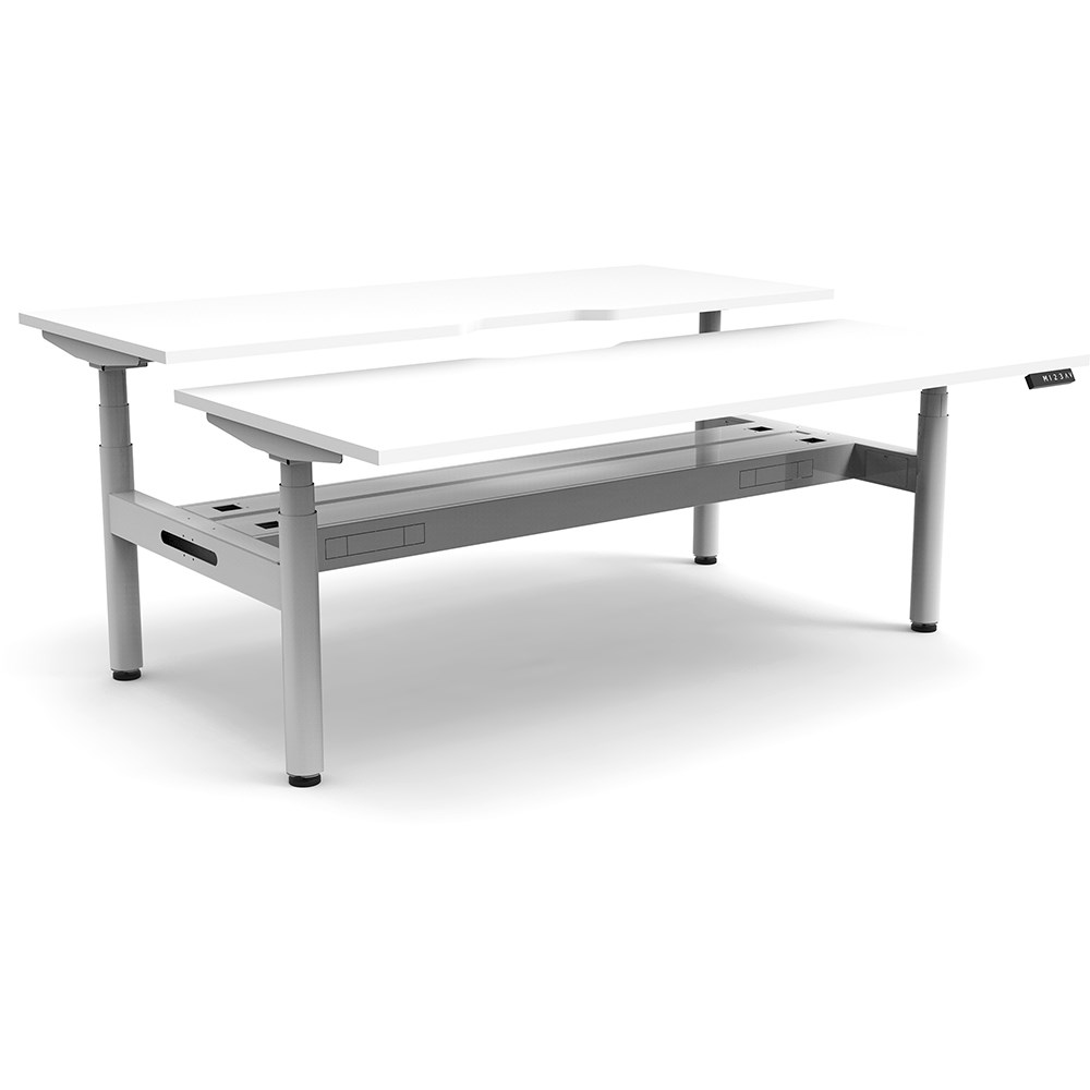 • 70mm diameter round column legs. 700mm wide foot size with adjustable leveling feet, return foot: 700mm. Comes with cable tray for cable management.