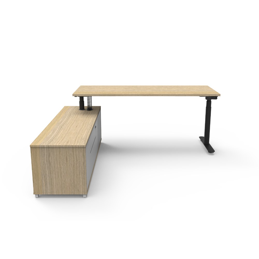 Rapidline Halo+ Executive Desk + LHS Cabinet 2020W x 1936D x 620-1270mmH Oak/Black