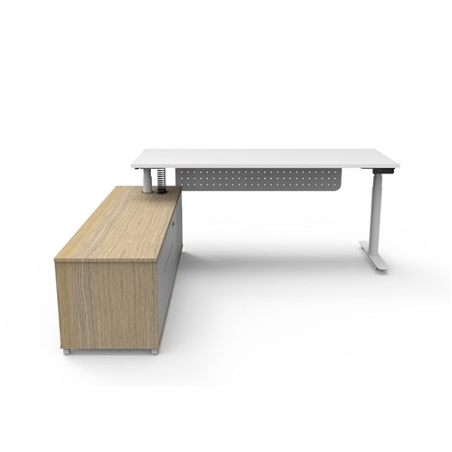 Rapidline Halo+ Executive Desk + LHS Cabinet + Panel 2020W x 2011D x 620-1270mmH White/Wht