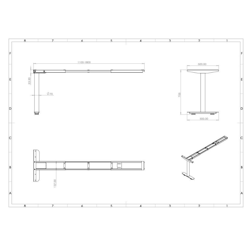 • Dimensions: 1100-1800W x 500D x 705mmH.