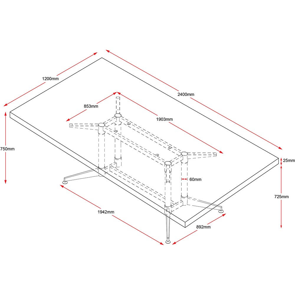 Rapidline Typhoon Boardroom Table 750Hx1200Wx2400mmD Natural Oak Top Black Frame