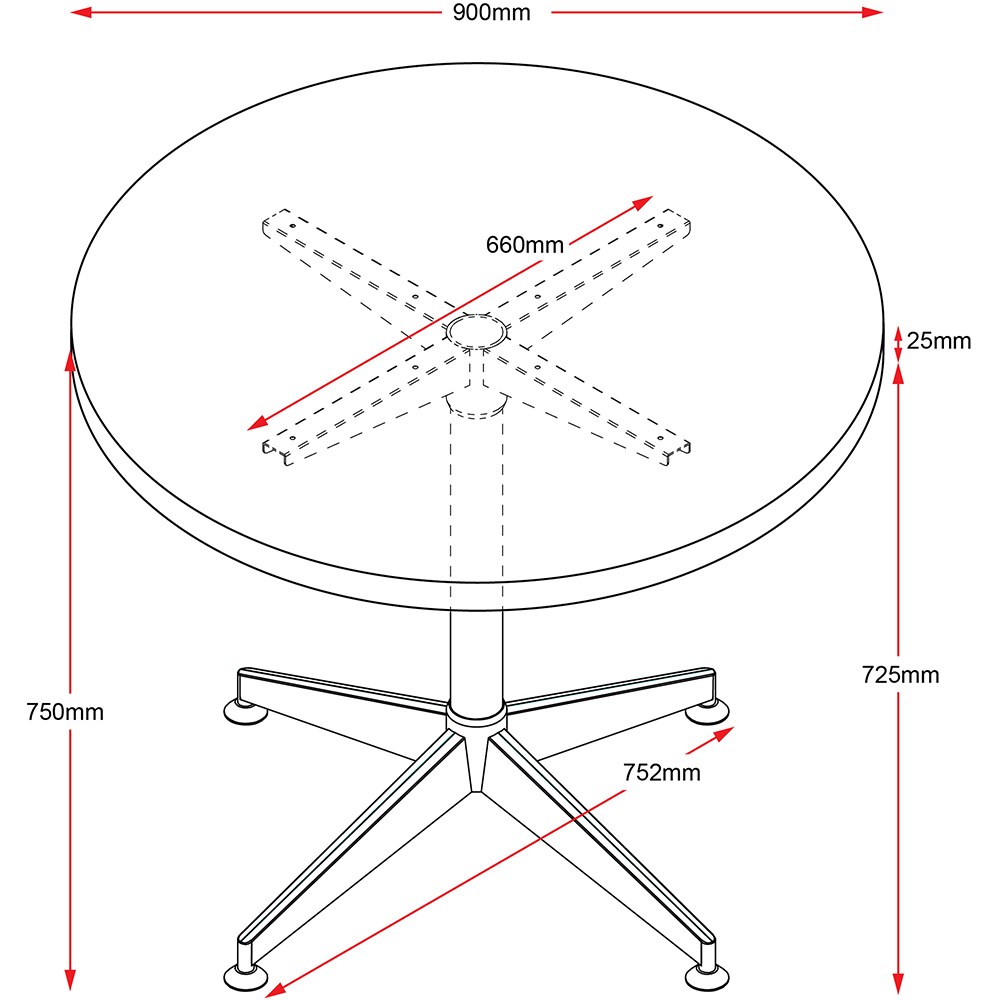 Rapidline Typhoon Round Table 750Hx900mmD Cherry Top Black Base