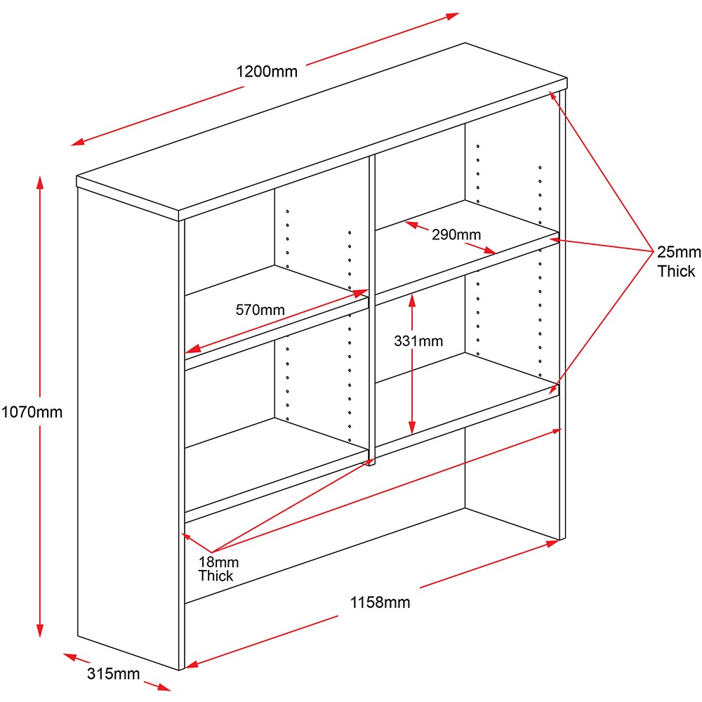 Rapidline Worker Desk Hutch 4 shelves 1070Hx1200Wx315mmD Natural Oak and Ironstone