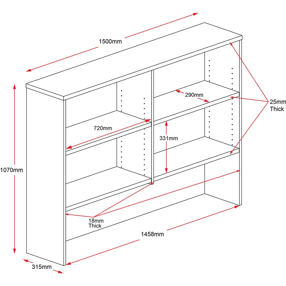 Rapidline Worker Desk Hutch 4 shelves 1070Hx1500Wx315mmD Natural Oak and Ironstone