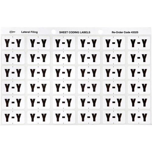 SHEET CODE LABEL ALPHA Y LATERAL SIDE TAB 30 LABELS/SHT 180 LABELS PK5