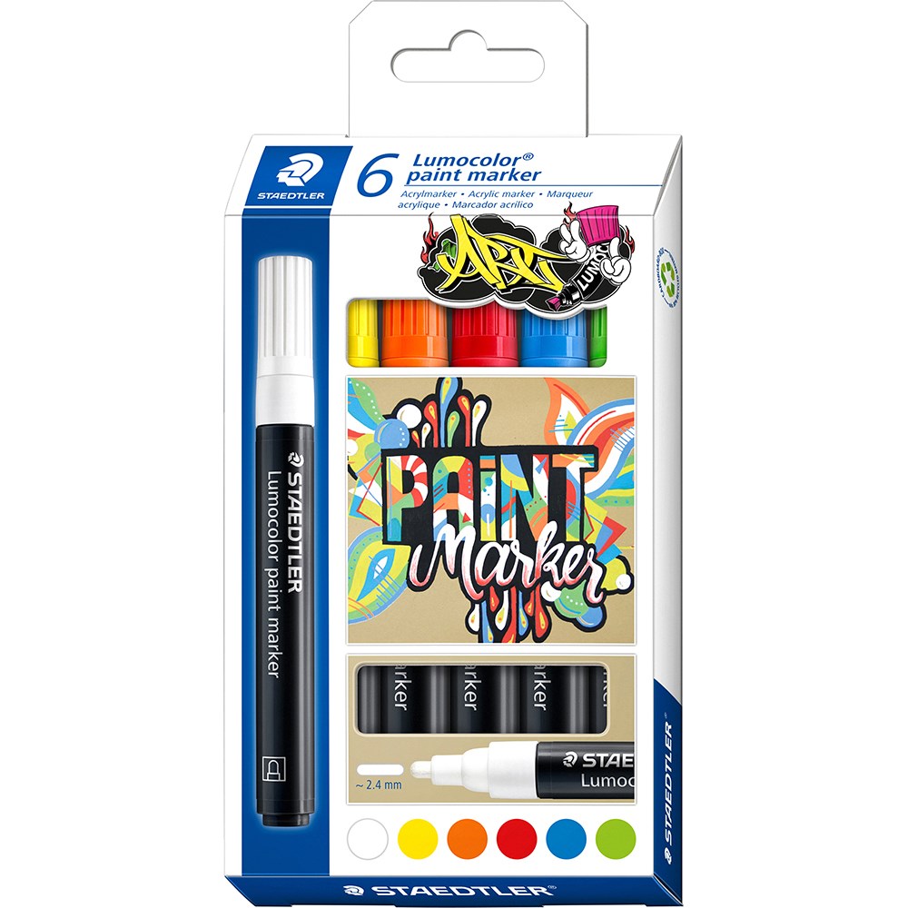 Staedtler 349 Lumocolor Paint Marker Medium Bullet 2.4mm Assorted Colours Box of 6