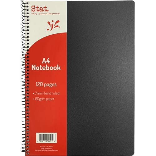 STAT NOTEBOOK A4 7MM RULED 60Gsm Black Pp Cover 120 Pages