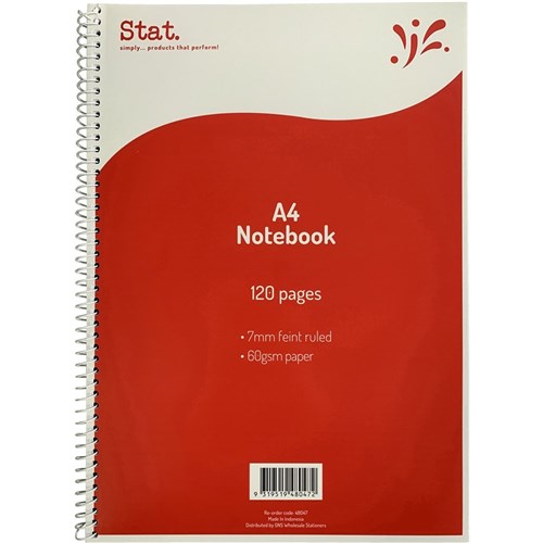 STAT NOTEBOOK A4 7MM RULED 60Gsm Red 120 Pages