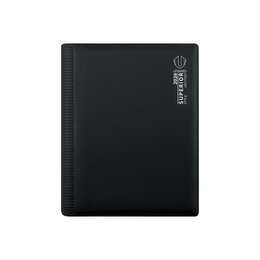 • Featuring a padded, phthalate free, PVC cover, pockets for storing business cards and wire-o binding to allow the diary to lie completely flat when open.