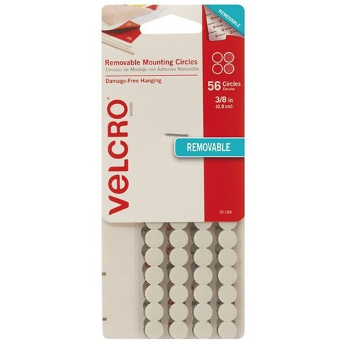 Velcro Brand Removable Circles 9mm White Pack of 56 White