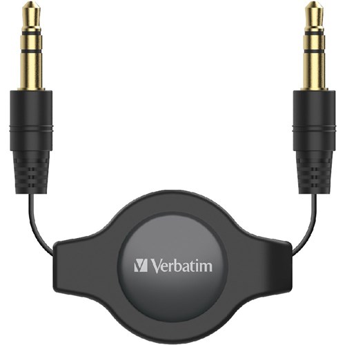 Verbatim 3.5mm Auxiliary Audio Cable 75cm Retractable Black