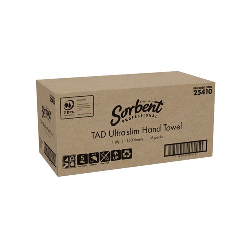 Sorbent Professional TAD Ultraslim  Hand Towel 1 Ply 150 Sheets Carton of 16